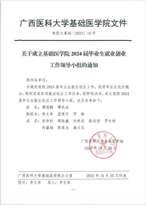 关于成立2024届毕业生就业创业 工作领导小组的通知