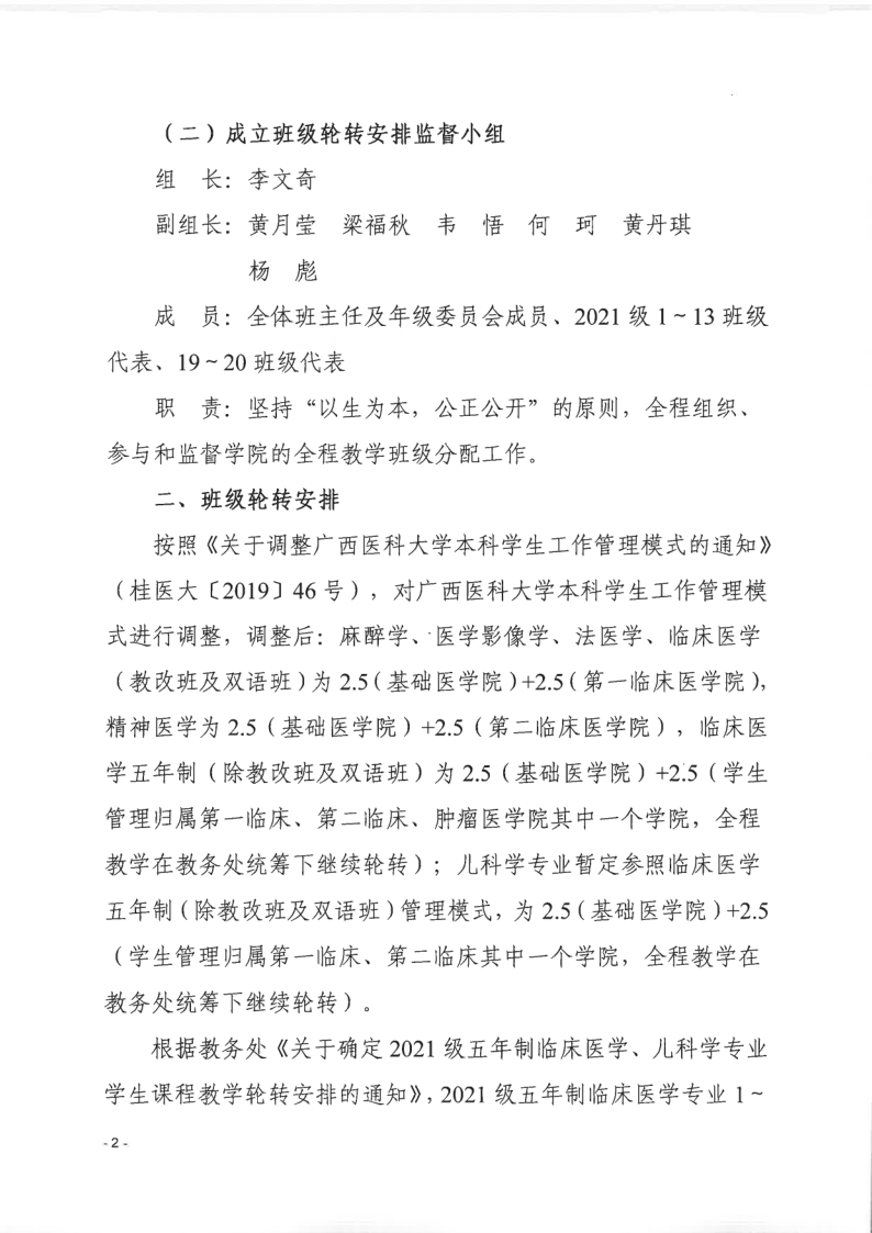 关于做好2021级五年制临床医学、儿科学等专业轮转安排工作的通知