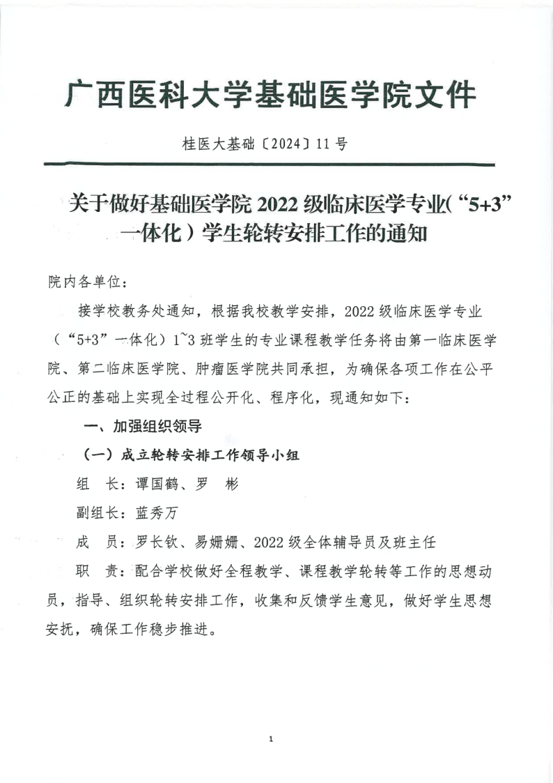 关于做好2022级临床医学专业(“5+3”一体化)轮转安排工作的通知