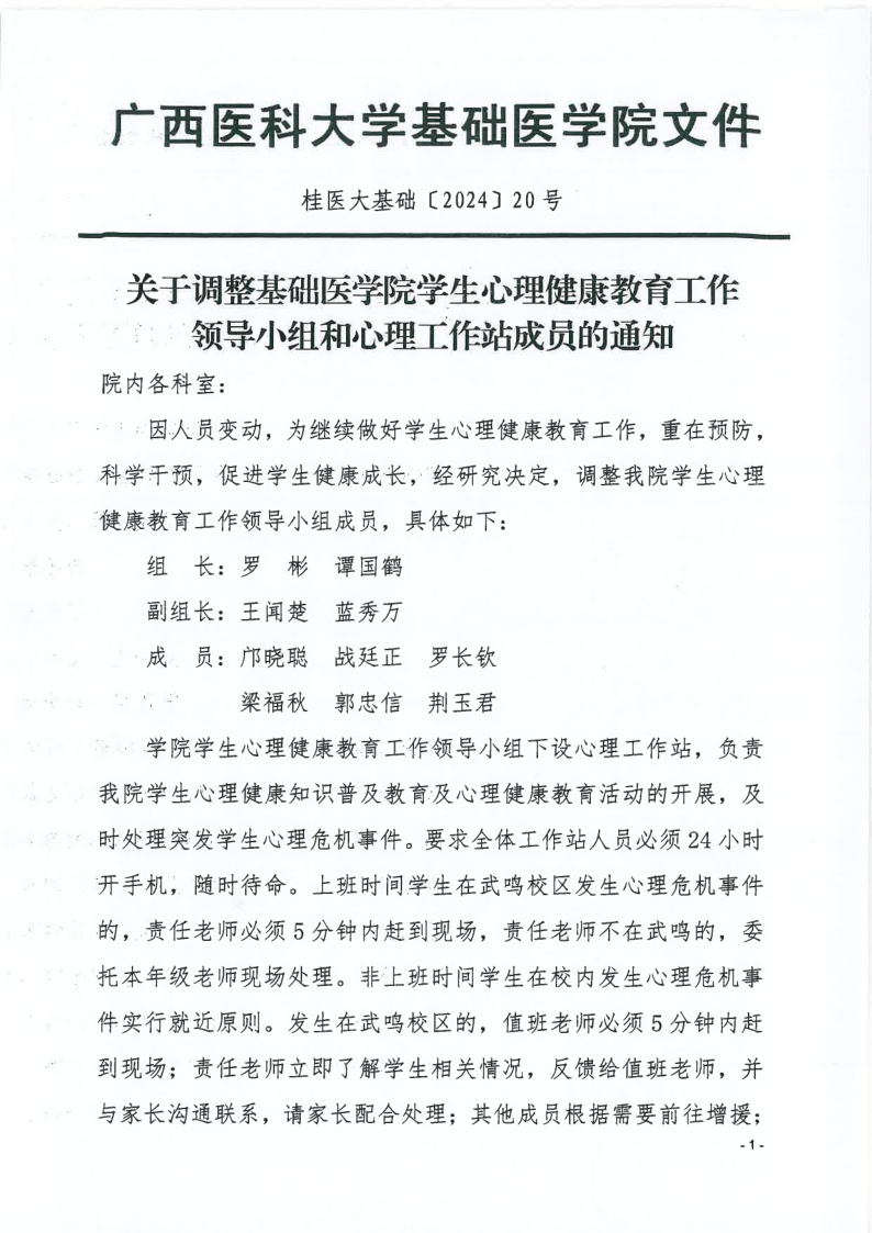 关于调整yl7703永利员工心理健康教育工作领导小组和心理工作站成员的通知