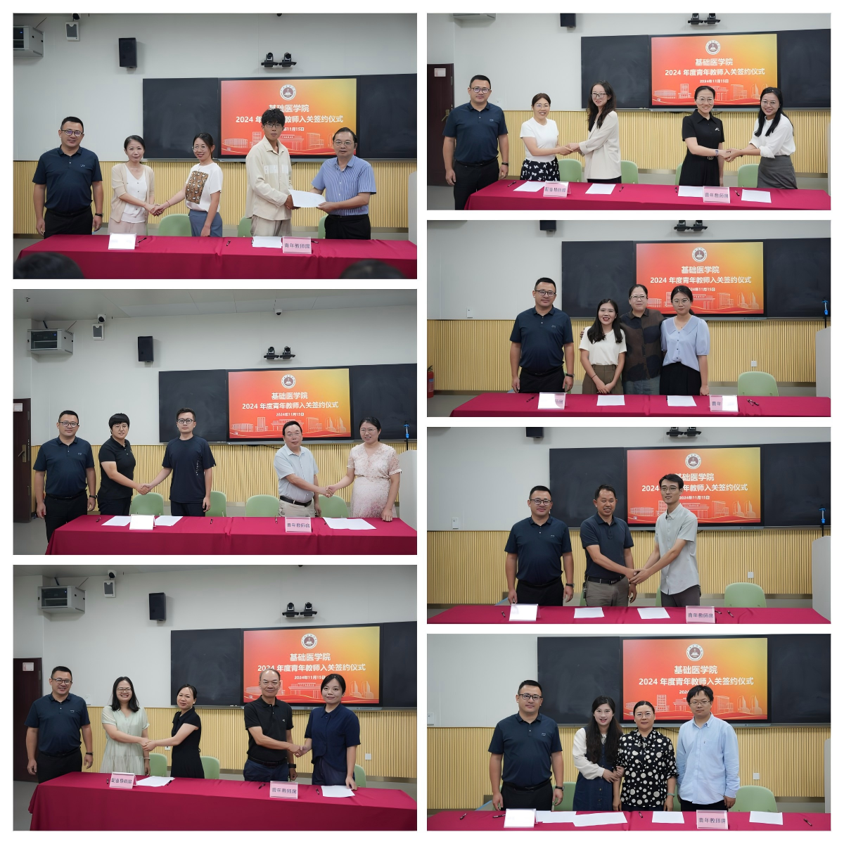 签约仪式上,来自人体解剖学、组织学与胚胎学、病理生理学、生理学、生物化学与分子生物学、微生物学、免疫学共7个教研室的13位入关青年教师,分别与配备导师签署了《青年教师导师制协议书》。唐君、李小翠、韦祥赞3位出关青年教师参加试讲考核,他们教学目标清晰、重点突出,设计巧妙、结构完整,展示了青年教师的教学风采。评委围绕教学态度、教学风格、教学理念、教学方式等方面给予中肯的点评和指导。最终,3位青年教师均通过了考核。
